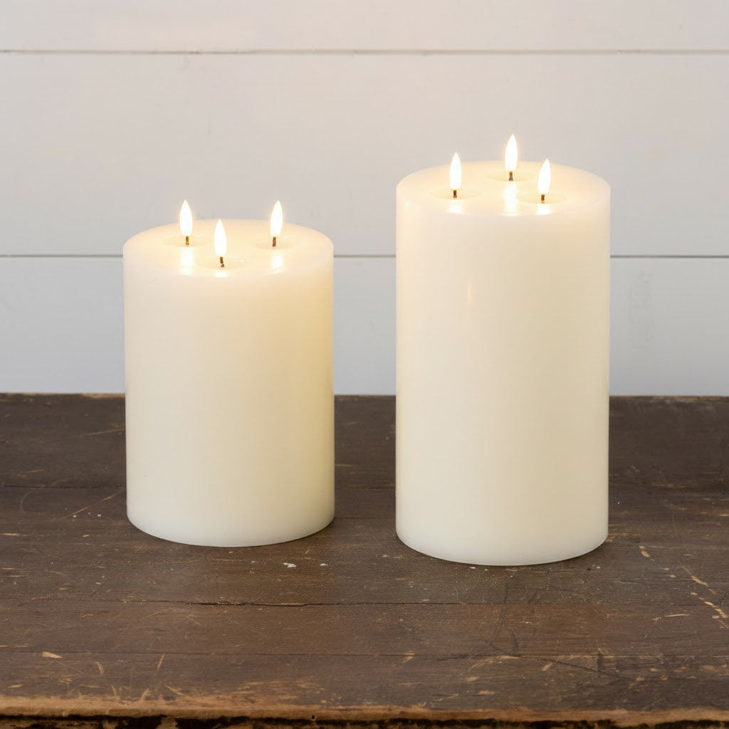 Make a bold statement with this 3-wick flameless candle. The generous size commands attention in any room, while the realistic 3D flame effect delivers ambiance without the worry of an open flame. Perfect for entertaining, gifting, or creating instant warmth in your space. Battery-operated convenience means you get all the cozy glow with none of the hassle.