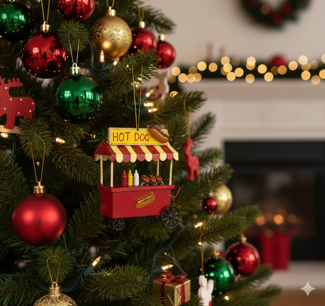 Bring a playful charm to your holiday decor with the Cody Foster Hotdog Stand Ornament. This delightful ornament captures every detail, from tiny hotdogs to mini ketchup and mustard containers, making it a fun and unique addition to your tree. Perfect for adding a touch of whimsy and nostalgia, it’s sure to spark smiles and warm memories throughout the season.