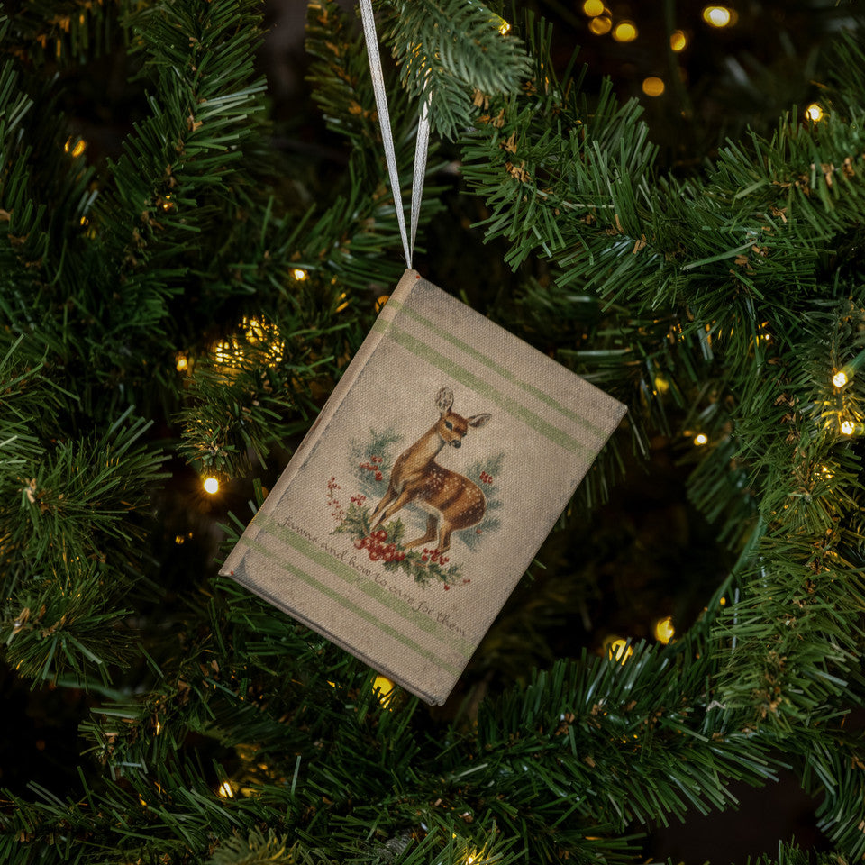 Add a sprinkle of vintage charm to your holiday decor with the Fawns and How To Care For Them Journal Ornament. Perfect for hanging on your tree or tying onto a gift, this delightful ornament brings a nostalgic touch that sparks cozy, woodland wonder. Its playful style makes every present and pine branch feel extra special this season.