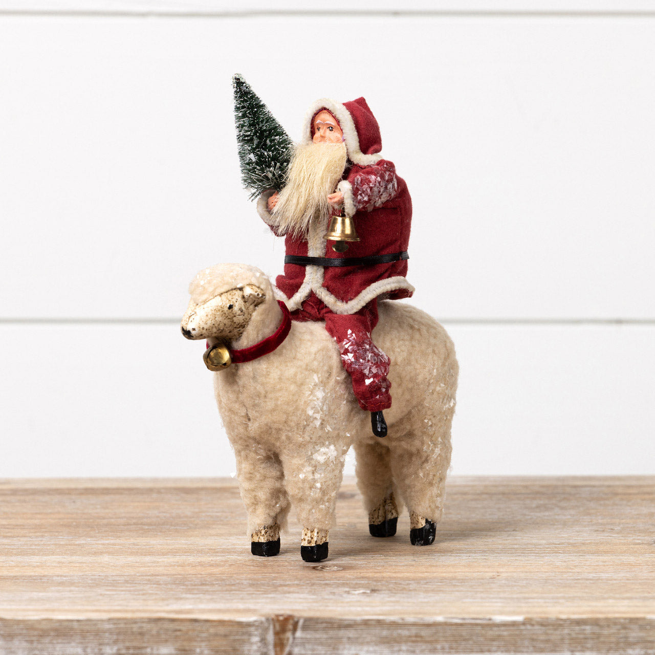 This charming Vintage Style Paper Mache Santa on Sheep is perfect for any holiday or rustic setting. Boasting a design reminiscent of old German pieces, it's the perfect way to add some nostalgic cheer to a room. Add a timeless atmosphere to your home with this unique piece.