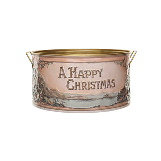Vintage Style Happy Christmas Embossed Tin Bucket