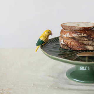 Retro Style Stoneware Pedestal Tray with Parrot