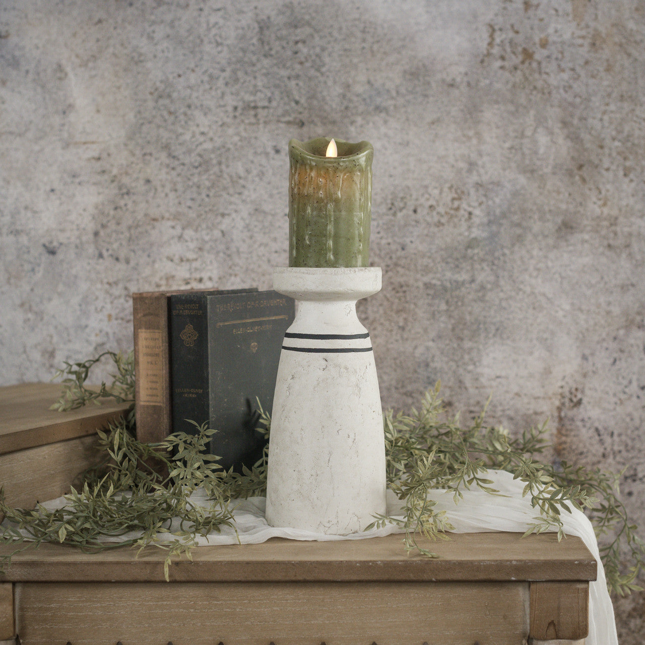 Display your pillar candles with timeless charm using this rustic black and white candle holder. Its farmhouse-inspired design brings warmth and character to any room, from cozy living spaces to dining tables. The classic color palette complements both traditional and modern décor, making it a versatile accent piece that elevates your home's ambiance while keeping your candles safely secured and beautifully showcased.