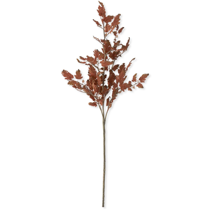 Capture the beauty of autumn all year long with this 45-inch Faux Oak Branch. Featuring richly toned rust-colored leaves on a realistic stem, this piece brings the warmth of fall foliage into your home without the worry of fading or shedding. Perfect for tall vases, seasonal centerpieces, or layered arrangements, its lifelike detail and generous height make it a striking accent on its own or combined with other botanicals. A timeless way to add depth, texture, and a cozy seasonal touch to any space.