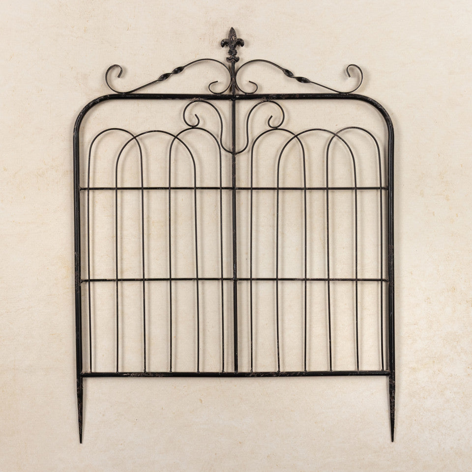 Transform your garden into a nostalgic retreat with this 32" Aged Green Black Garden Gate Trellis. Its classic design and weathered finish evoke timeless countryside elegance, while the integrated trellis structure supports climbing vines and flowers for a lush, romantic garden display. Perfect for creating charming focal points and defining garden spaces with authentic old-world appeal.