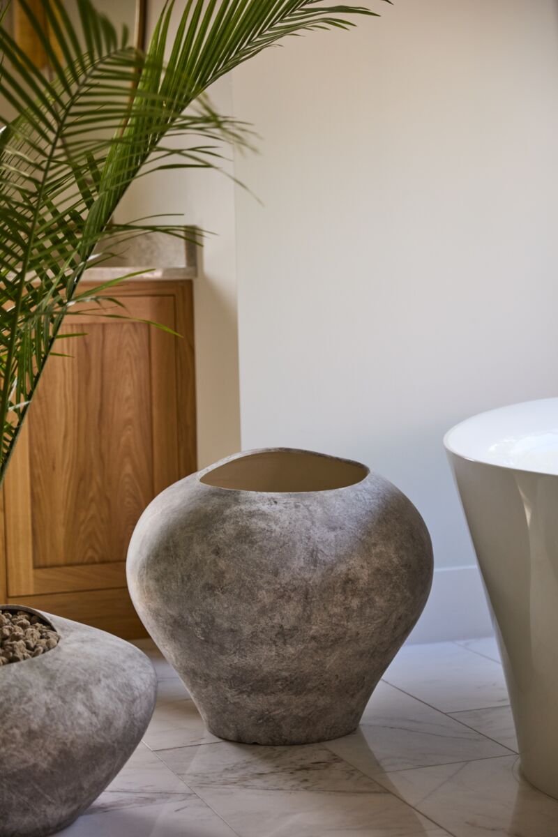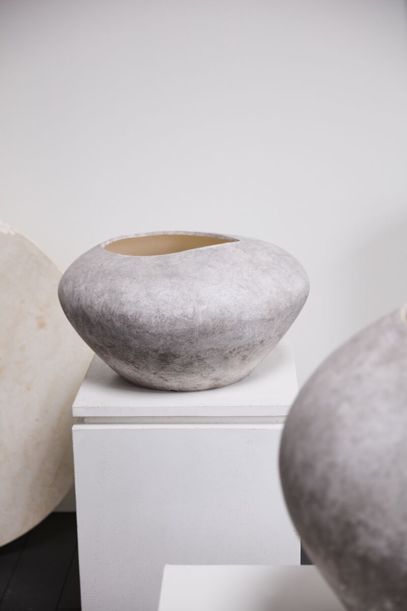 Create a powerful focal point in the home with the old-world look & organic intrigue of the ceramic Angelou Collection. These large-scale vessels feature an off-center & irregular-shaped opening for a sculptural look. Fill with a tree or statement branches for a floor-based decorative home decor piece. Layer the 2 unique Angelou silhouettes together for a dynamic display.