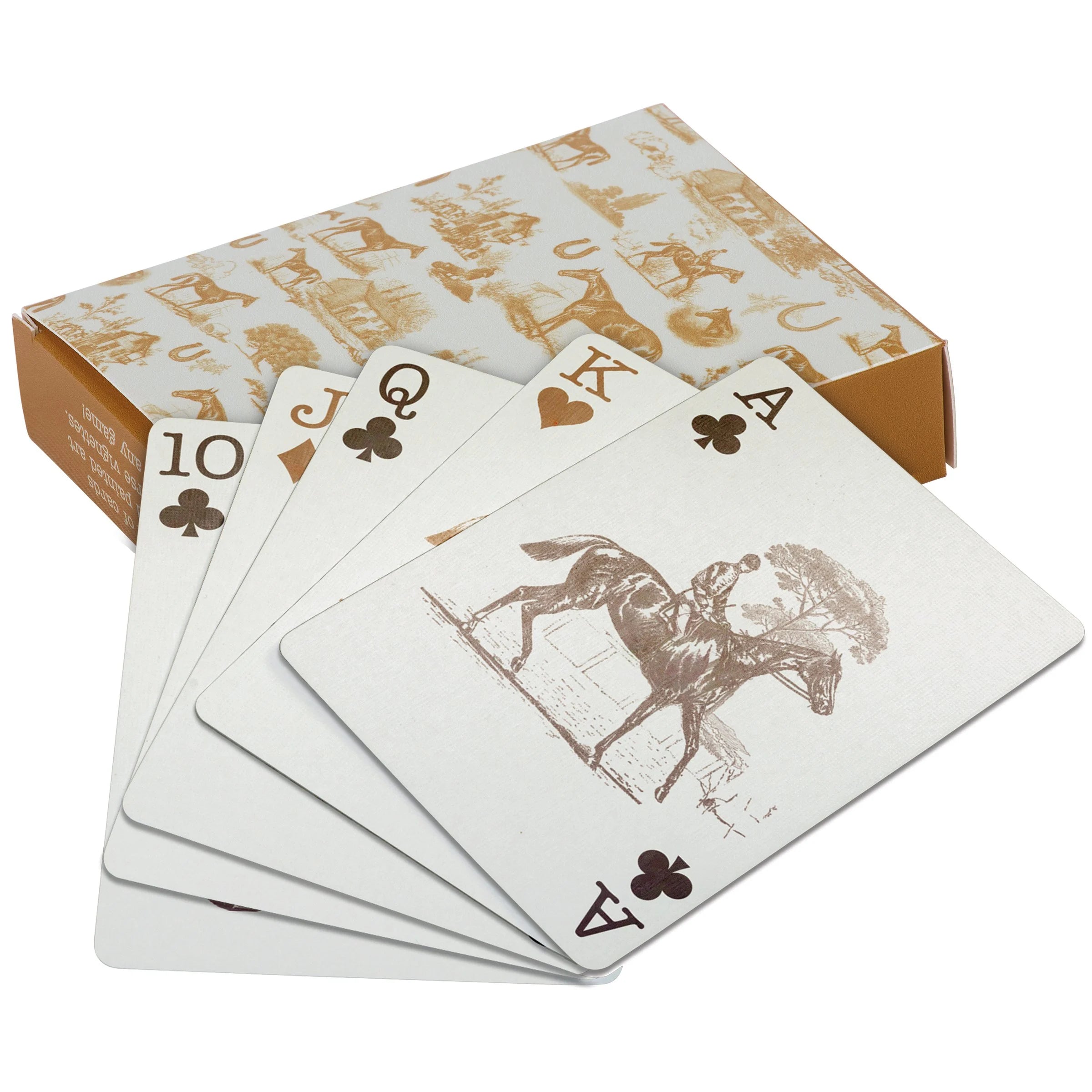 Elevate your card game with these stunning Equestrian Playing Cards, featuring vintage horse-themed designs on both the face and back of each card. Perfect for enthusiasts who appreciate timeless equestrian aesthetics, this deck combines classic style with functionality. Housed in a protective cardboard box that showcases the full card art, these cards are ideal for storage and travel. Whether you're a seasoned player or casual game enthusiast, this vintage-inspired set makes an exceptional gift for anyone who loves horses and quality craftsmanship.