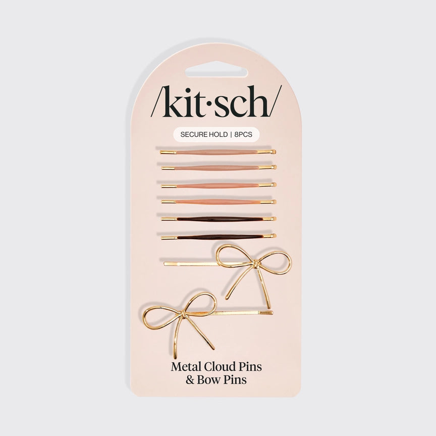 Kitsch Metal Enamel Cloud & Bow Bobby Pins 8pc Set - Rosewood