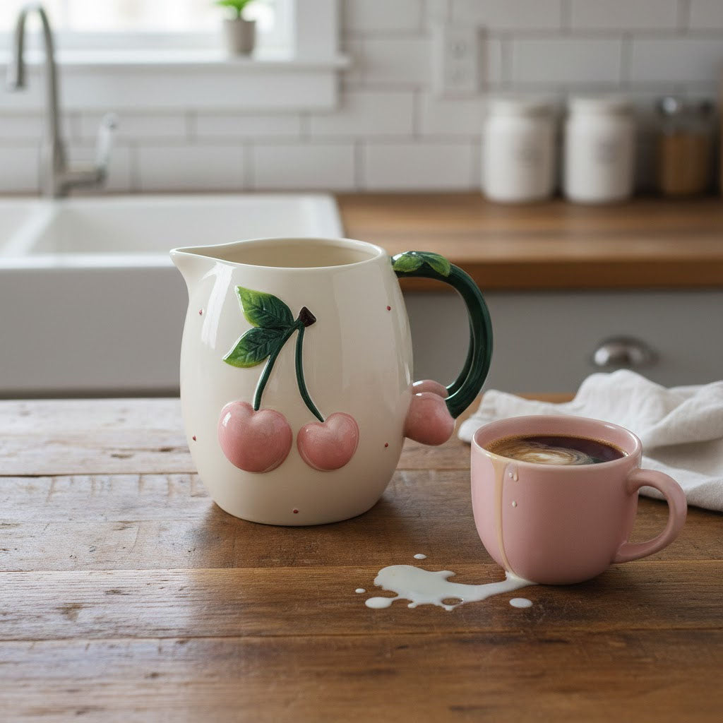 This charming stoneware pitcher brings rustic elegance to your kitchen with its hand-painted design featuring vibrant 3D cherries and decorative dots in white, pink, green, and red. Perfect for serving beverages or displaying fresh flowers, the 1-3/4 quart capacity makes it ideal for everyday use or special gatherings. The embossed details add artisanal character that complements both traditional and eclectic home décor.
