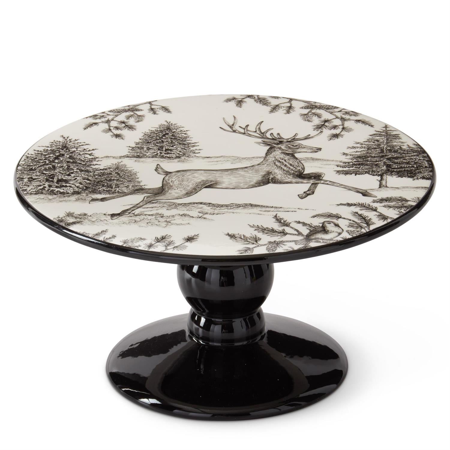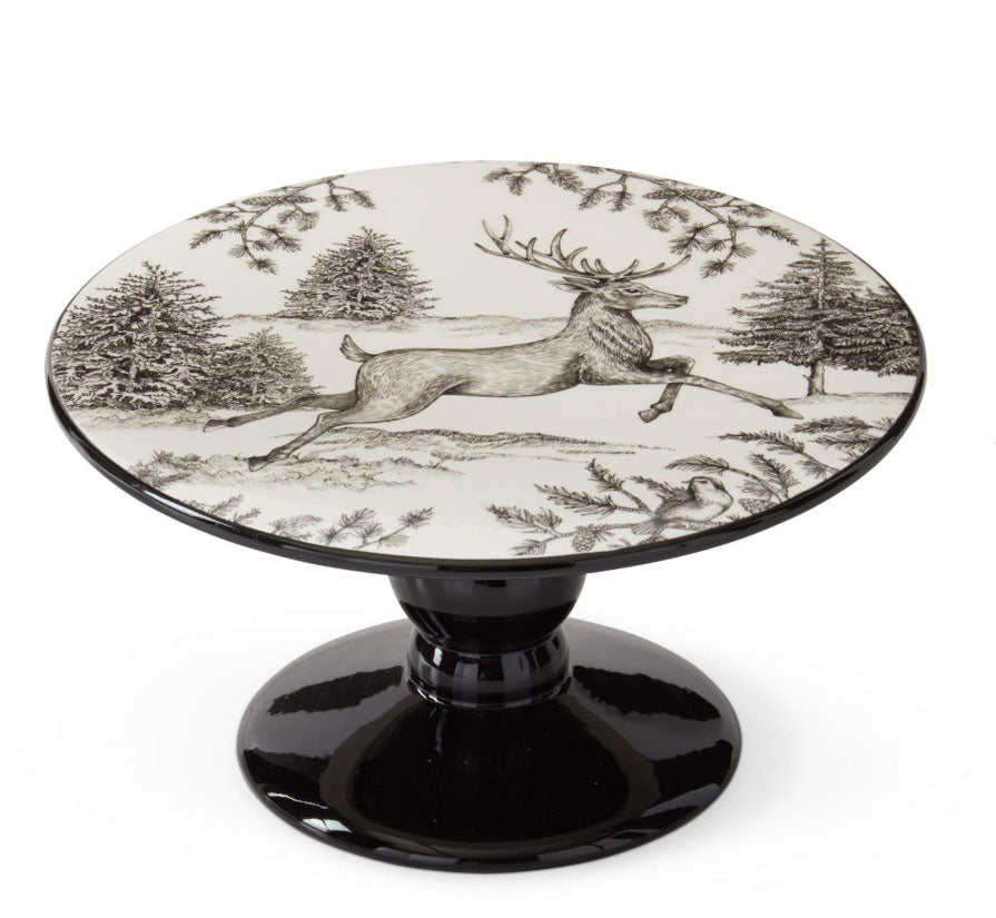 Add a festive flair to your holiday table with the Black and White Toile Deer Cake Stand. Its beautiful, unique colors and charming deer design make it a playful centerpiece perfect for entertaining. Showcase your favorite desserts in style and watch your guests admire this delightful holiday staple.