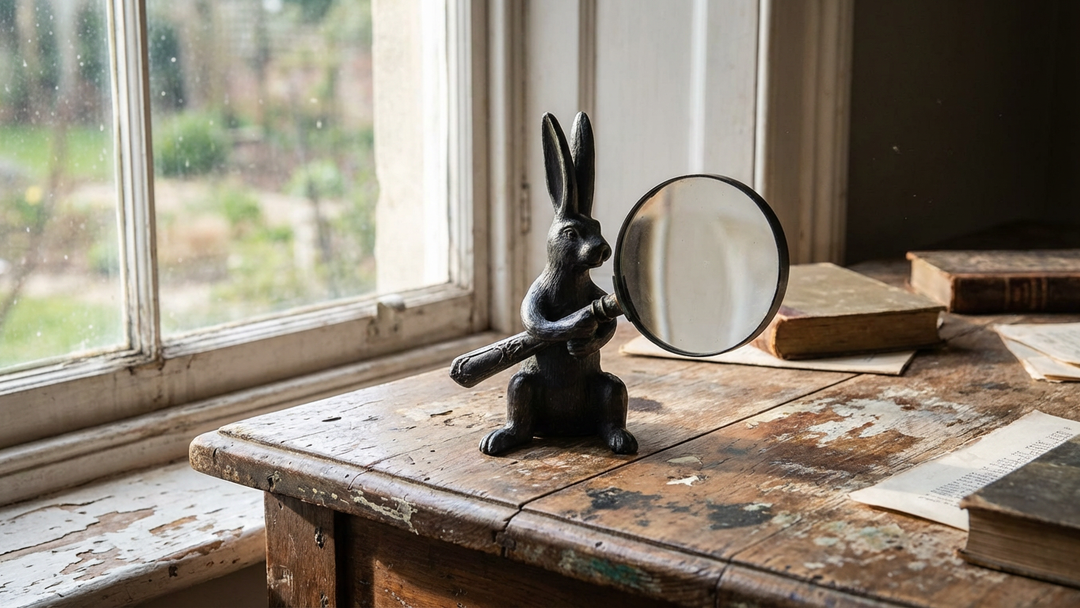 Meet your desk's newest companion—an adorable bunny clutching a real magnifying glass. This charming piece combines whimsy with function, perfect for adding personality to your workspace while keeping a practical tool within reach. Whether you're a nature lover, collector, or simply someone who appreciates quirky décor, this delightful bunny brings both character and utility to any desk setup.
