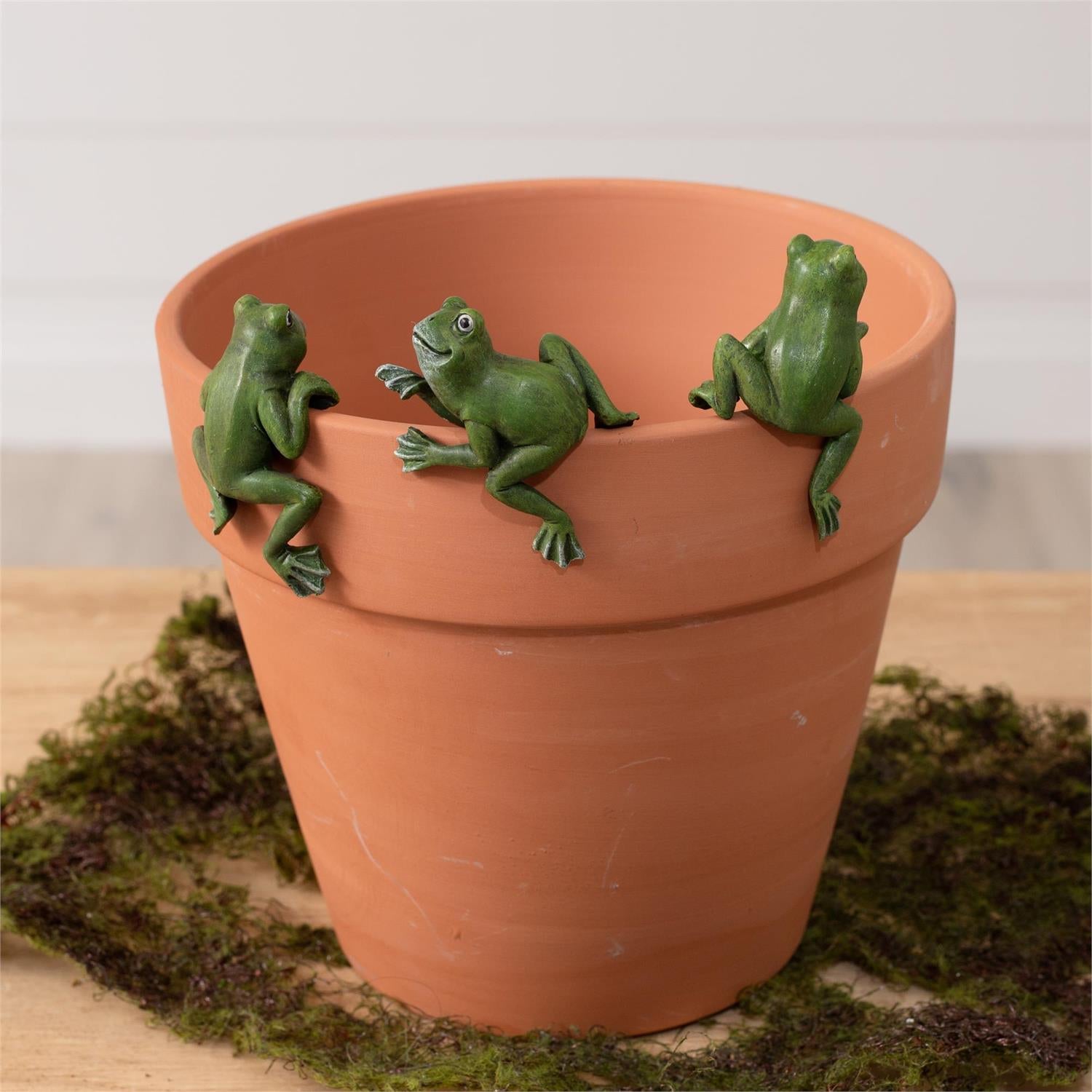 Add a charming touch to your garden with our Set of 3 Frog Flowerpot Huggers! This adorable little set of frogs will hang onto your flowerpot, adding a whimsical and endearing touch to your plants. Let this cute set bring joy and charm to your outdoor space.