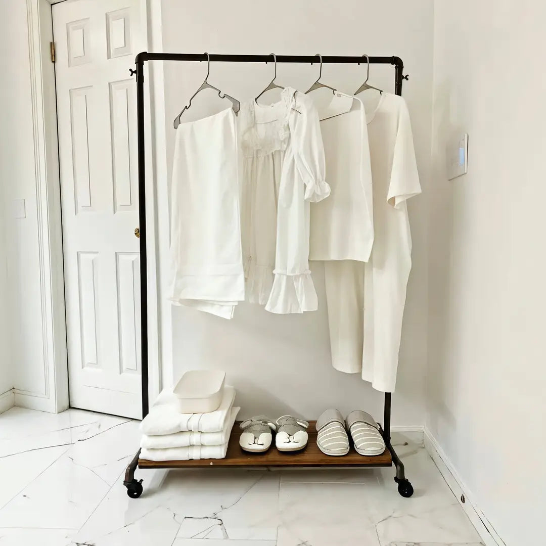 Transform your closet or retail space with this vintage-inspired metal garment rack. Featuring sturdy black metal construction with a rich sanded walnut wood shelf, it combines industrial style with practical storage. The spacious design accommodates up to 100 lbs on the hanging rod and 30 lbs on the bottom shelf, making it ideal for organizing clothing, accessories, or display items. Lockable wheels provide easy mobility while keeping your setup secure. Perfect for adding retro charm to bedrooms, boutiques, or home offices. Assembly required.