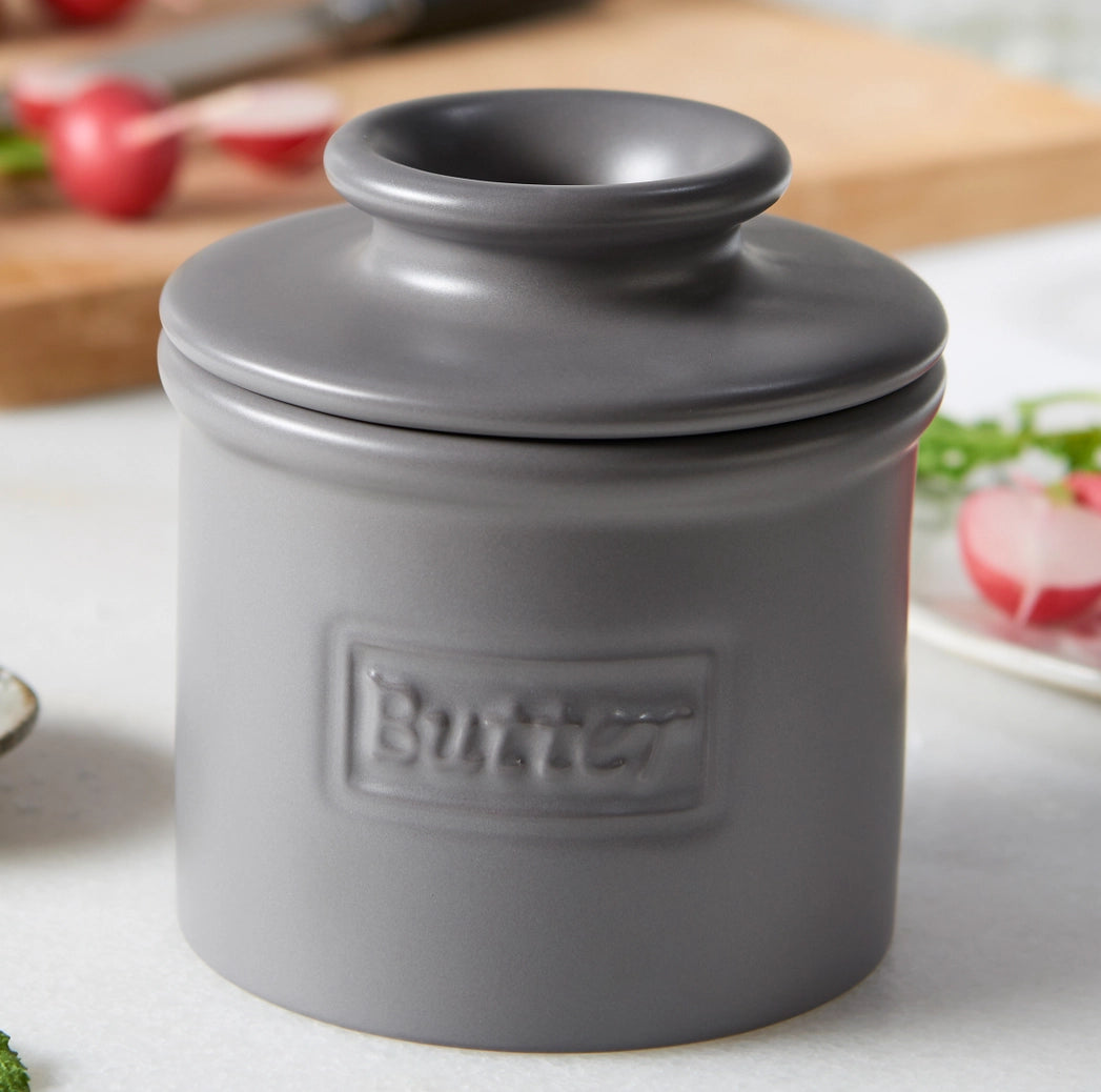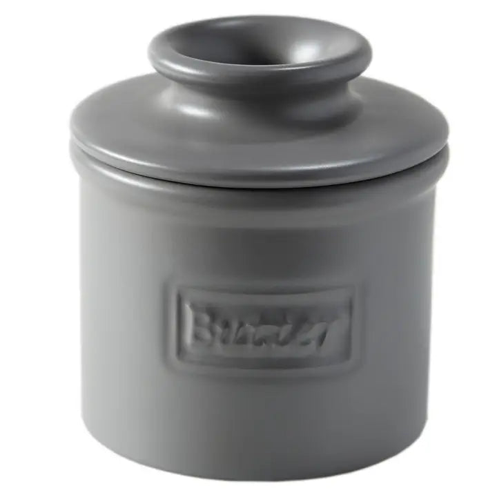 The Original Butter Bell Crock in Caffe Matte Gray brings timeless elegance to your kitchen counter. This beautiful piece features a sophisticated grey finish that complements any décor while keeping butter fresh and spreadable at the perfect consistency. The classic design combines form and function—store butter in the lower crock while water in the bell-shaped lid creates an airtight seal. Perfect for butter lovers who appreciate both style and practicality, this stunning crock transforms everyday butter service into a charming culinary ritual.