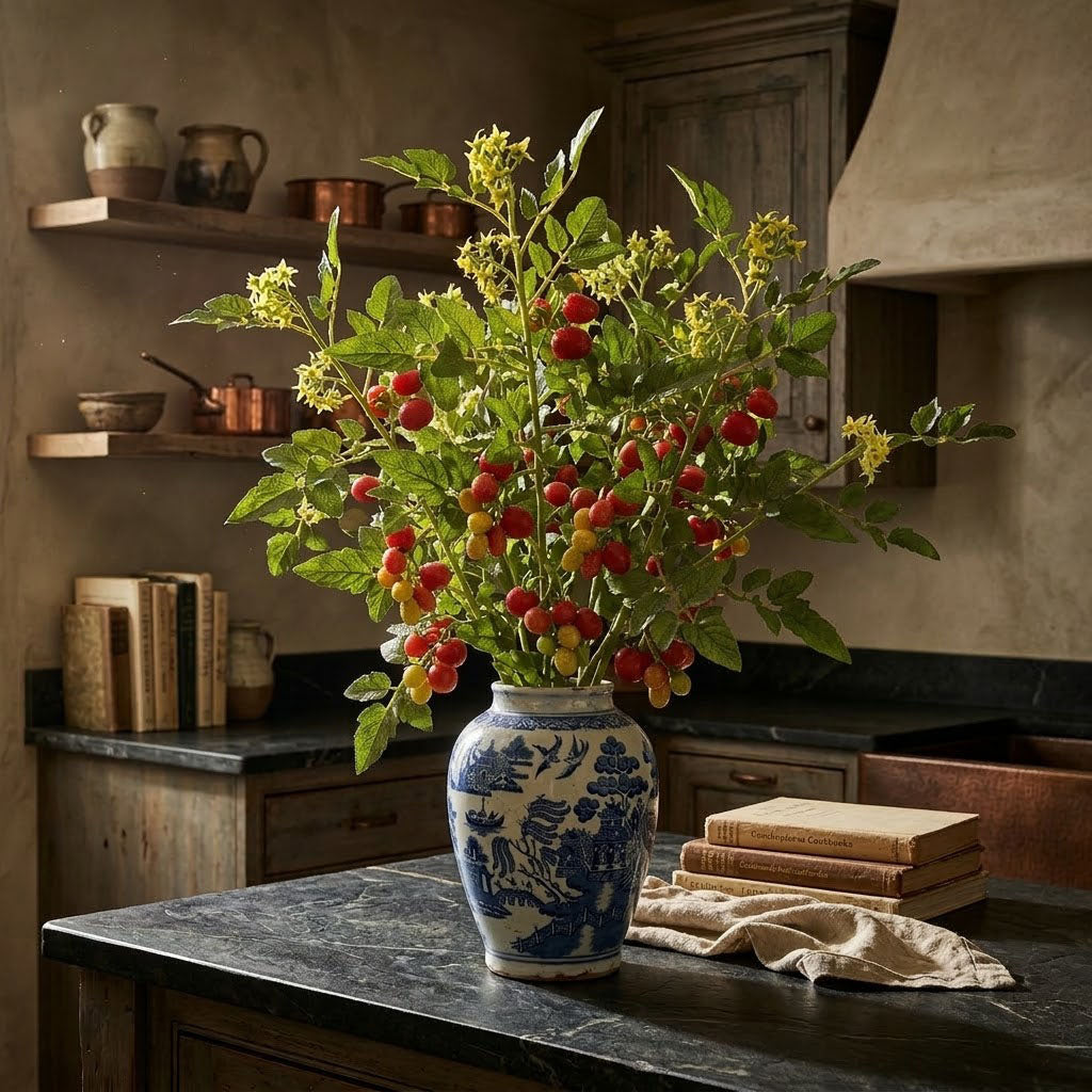 Add some fresh and vibrant energy to your home with our 32" Faux Tomato Stem! Perfect for creating a lively centerpiece in your kitchen, this stem is a must-have for the summer season. Its realistic appearance will bring a touch of nature to your home without any maintenance.