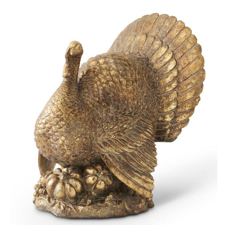 This Centerpiece Turkey in shades of gold and bronze is a stunning piece of craftsmanship, designed for your family to enjoy and pass down through generations. With its intricate design, brilliant gold finish this work of art brings an air of sophistication and luxury to any holiday gathering.