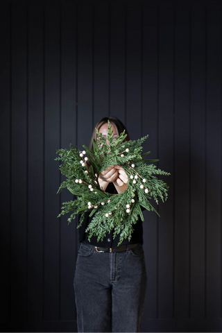 14" White Plum Berry Norfolk Cypress Real Touch Wreath