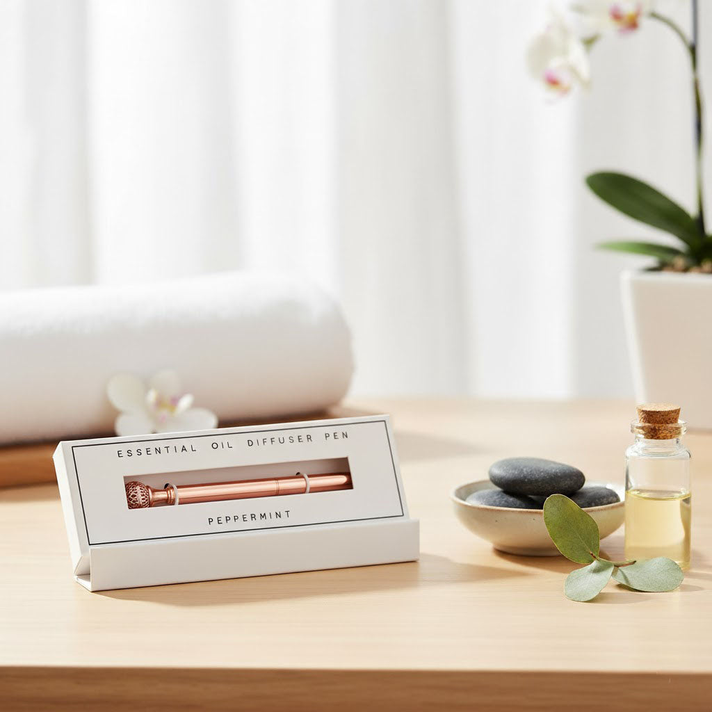 Transform your writing routine into a sensory escape with our Essential Oil Diffuser Pen. This innovative pen combines functionality with aromatherapy—simply apply your favorite essential oils to the porous lava bead, secure it in the elegant cage design, and enjoy continuous fragrance as you work or create. Perfect for personalizing your workspace or gifting to someone special, this peppermint-scented diffuser pen elevates everyday moments with natural aromatics. Whether you need focus, calm, or invigoration, let your mood guide your scent choice while you write in style.