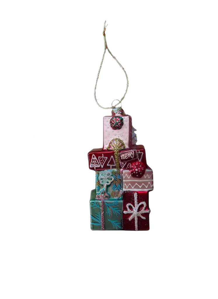 Add a touch of festive charm to your tree with these beautifully stacked Gift Box Glass Ornaments, each one a sparkling celebration of the season. Available in two whimsical styles, these ornaments feature hand-painted details, glitter accents, and metallic finishes that shimmer under the lights.