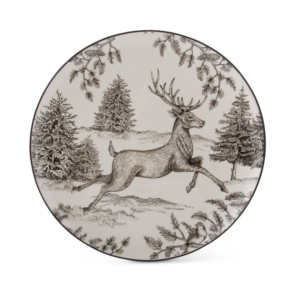 Add a touch of holiday charm to your table with this 12" Black and White Toile Deer Plate. Featuring a whimsical deer design in classic black and white, it’s perfect for serving festive treats or showcasing seasonal decor. Bring a playful yet elegant vibe to every meal and make your holiday gatherings unforgettable.