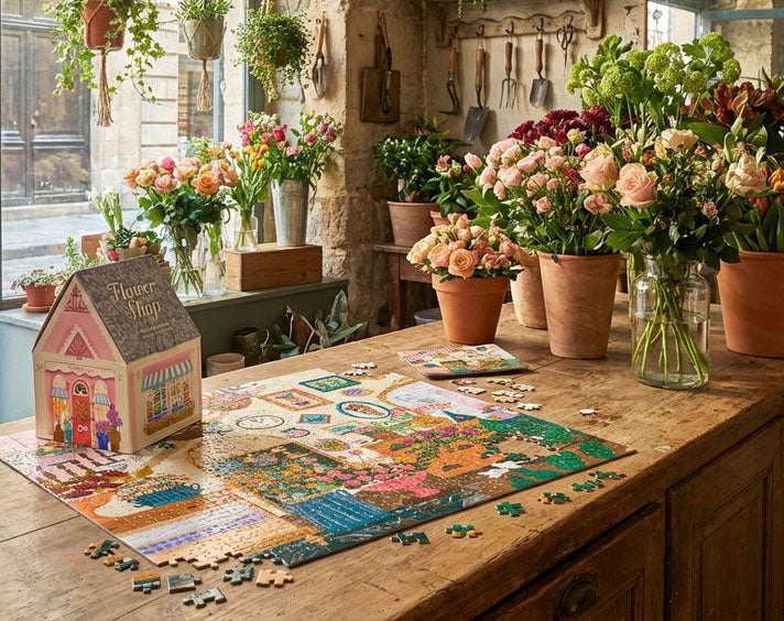 Step into a whimsical flower shop with this charming 500-piece puzzle by beloved artist Joy Laforme. The intricate design captures a cozy, imaginative scene filled with botanical beauty and delightful details. Housed in an adorable house-shaped box, it's the perfect gift for puzzle enthusiasts and art lovers alike. Ideal for a relaxing afternoon or a creative family activity, this puzzle combines quality craftsmanship with Joy Laforme's signature artistic style.