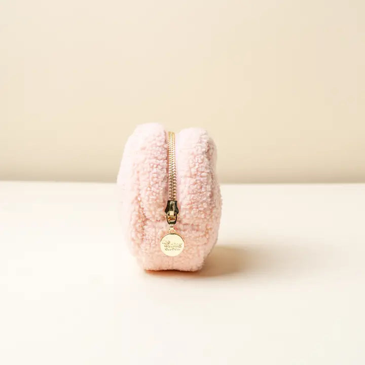 Keep your essentials safe, cozy, and oh-so-sweet with the Valentine’s Teddy Pouches! Made from irresistibly soft sherpa material, these pouches feature adorable details that make them a joy to carry. The wipeable interior lining and chic gold hardware make them perfect for cosmetics, travel, purse organization, or little everyday treasures. For extra charm, mix and match with our coordinating square and rectangle teddy pouches to create a whimsical Valentine’s collection. Cute, cozy, and full of love—these pouches are the perfect way to elevate your accessory game this season!
