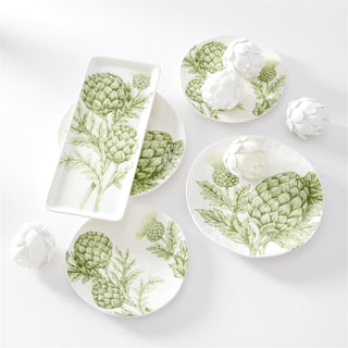 10.5" Non-Symmetrical White Dolomite Plate with Green Artichokes