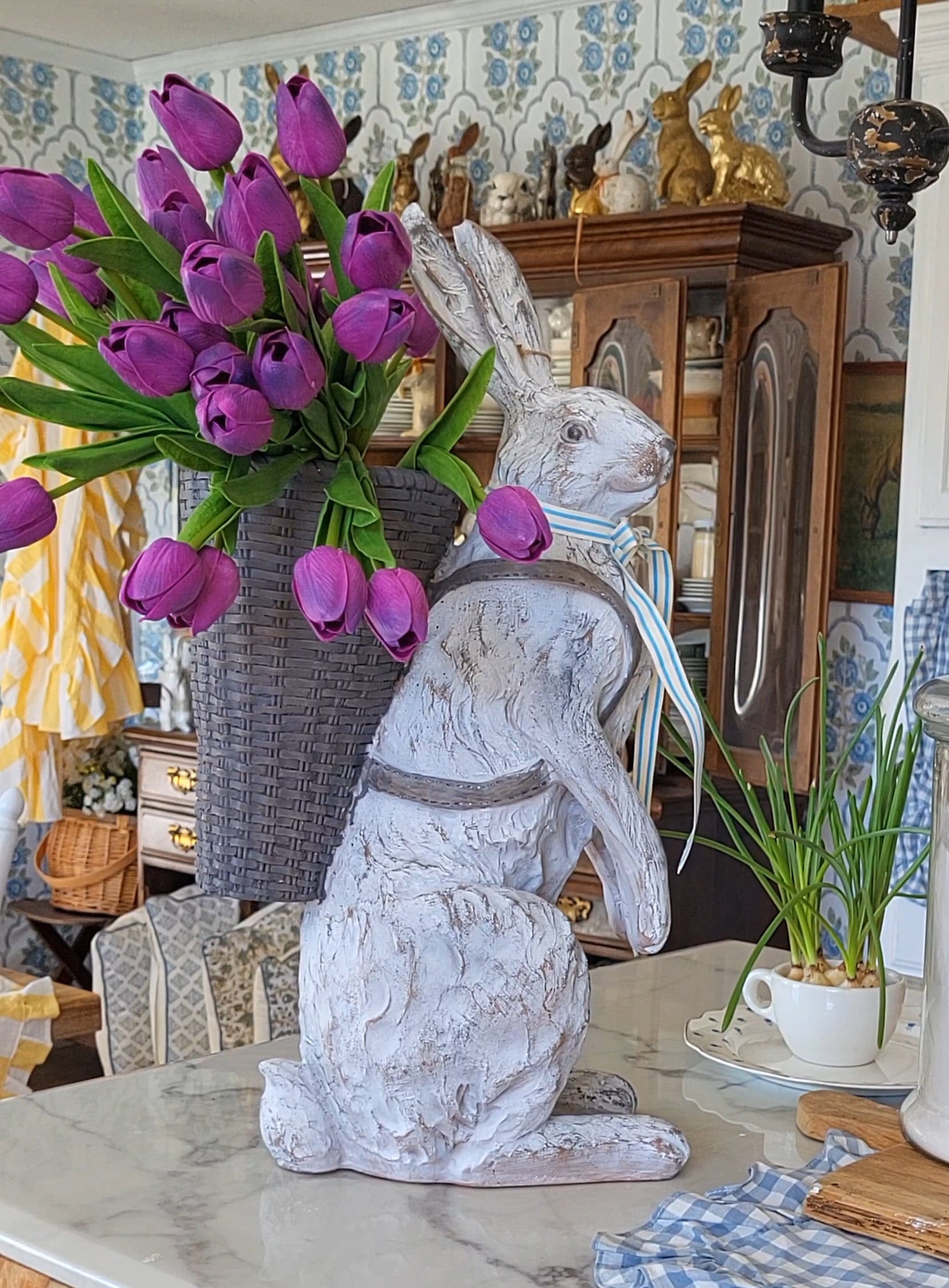 Transform your spring displays with these charming whitewashed resin bunnies featuring open baskets perfect for faux florals or Easter eggs. Their neutral finish complements any home aesthetic, blending seamlessly into existing décor. Available in large and small sizes—mix and match to create layered, eye-catching arrangements that make a bold statement. A versatile seasonal essential that brings warmth and whimsy to your space.