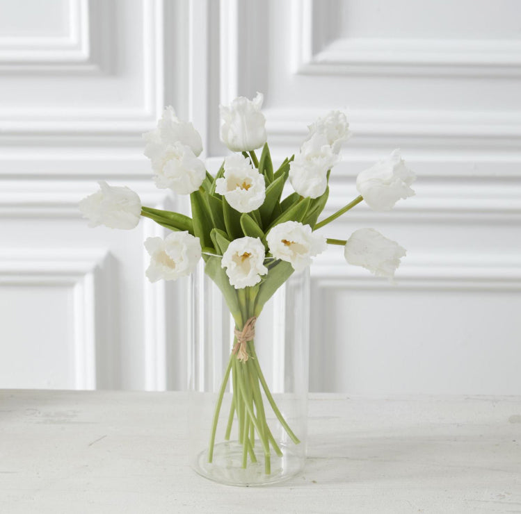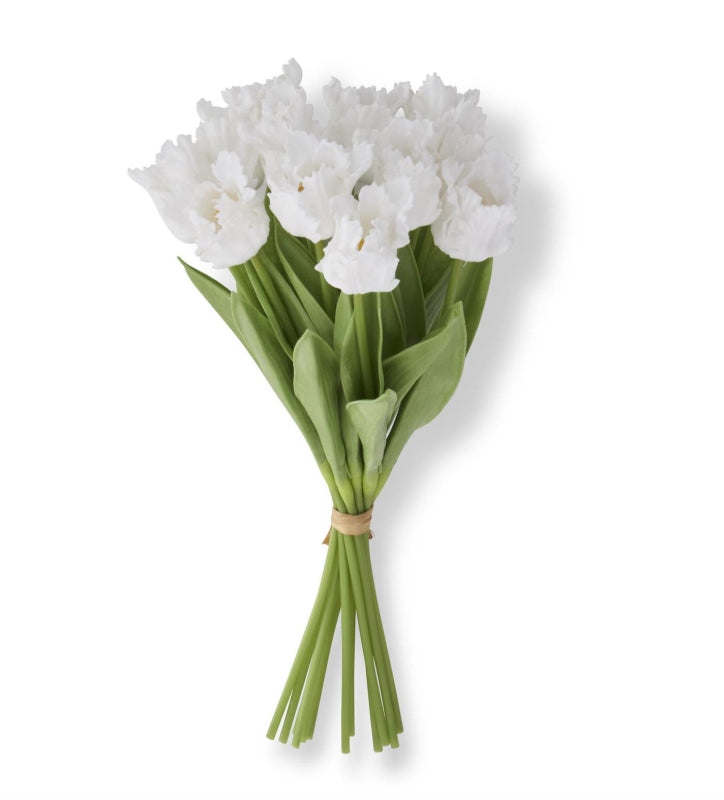 Bring the beauty of spring into your home with our 13" White Real Touch Parrot Tulip Bundle! This stunning bundle includes 12 faux tulips that look and feel incredibly lifelike, making it perfect for displaying in a vase or laying on a table. Add a touch of nature to your decor without the hassle of real flowers!