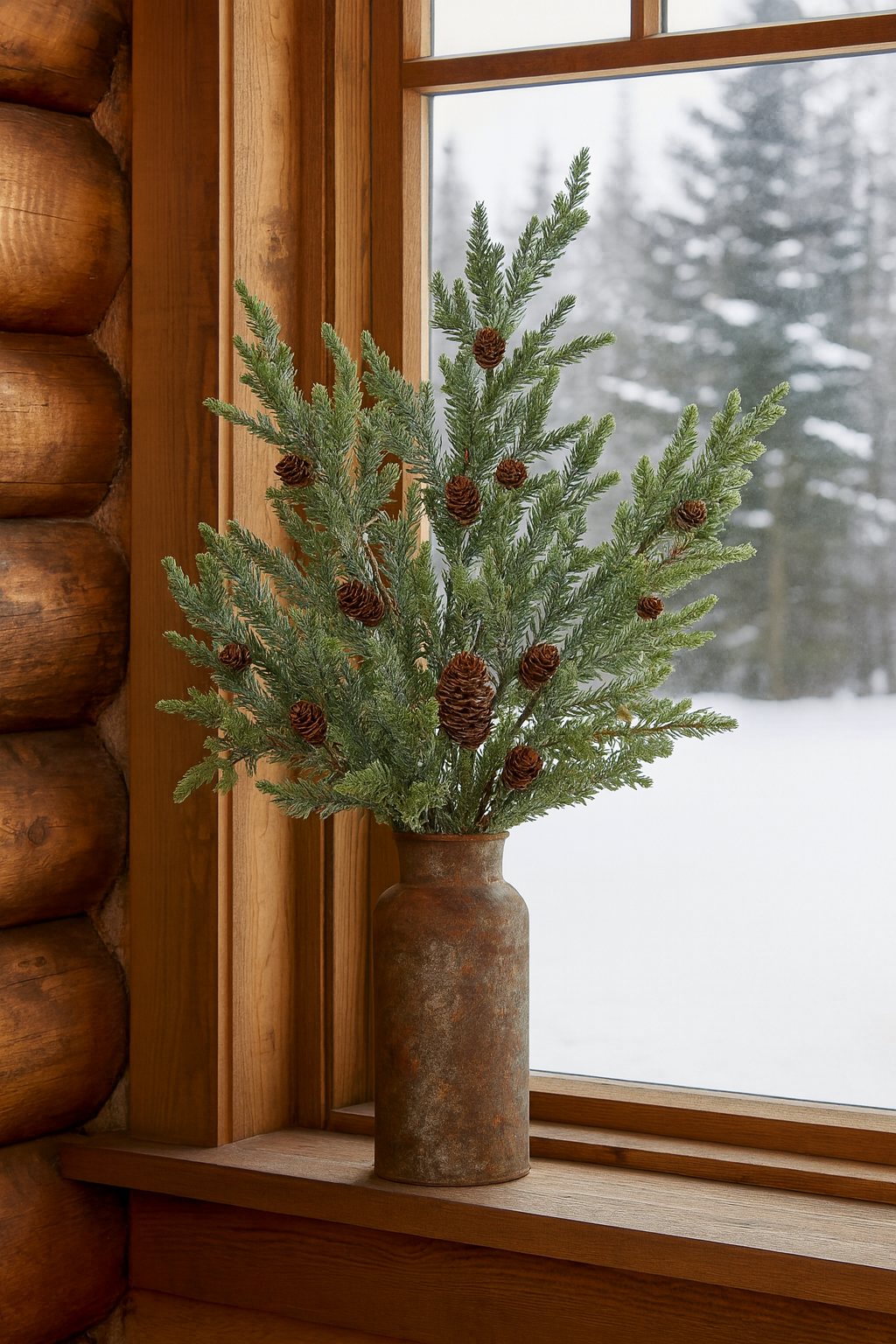 Enhance your holiday floral arrangements with this 32" Pine Stem featuring lush boxwood and charming pinecones. Its natural texture and festive green hues bring warmth and elegance, making every centerpiece and wreath stand out with seasonal beauty. Perfect for adding an authentic touch to your décor, this stem effortlessly elevates any holiday display.