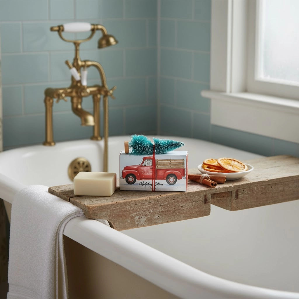 The holiday fun rolls on with a vintage green truck driven by a festive goat. Loaded up with cheer and topped with a mini Christmas tree, this bar brings the forest’s magic straight to your sink or bath. San Francisco Soap Company's Holiday Citrus Goat Milk Bar Soap blends the cozy sweetness of sugared pine with creamy goat milk for a scent that’s both fresh and comforting. Dye-free and 7 oz of pure joy, it’s a merry little soap that makes your skin and your spirit sparkle all season long.
