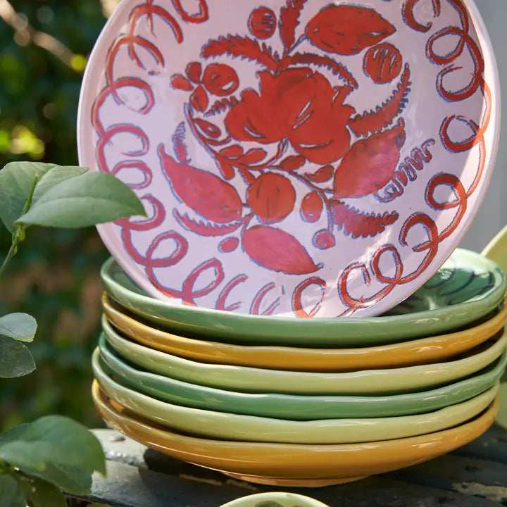 This collection honors the Mediterranean's harvest bounty with a palette of amber yellows and earthen greens, each piece adorned with intricate, hand-painted motifs. From generous serving platters perfect for gathering around the table to everyday plates that elevate simple meals, each ceramic brings the rustic elegance of Italian countryside living to your autumn table.