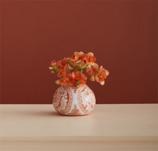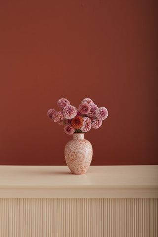 The Hand Painted Coral Chinoiserie Vase - Bulb Shaped
