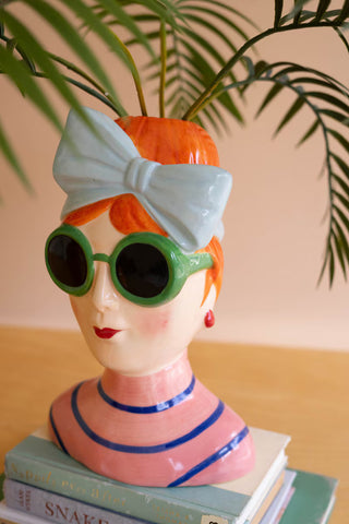 Set of 2 Ceramic Lady Vases with Sunglasses