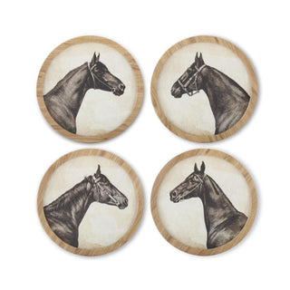 15.75" Round Natural Framed Horse Head Print - Choose Style