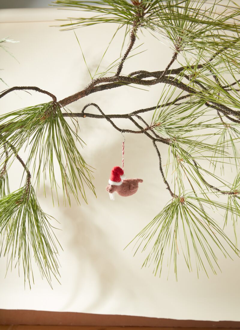 Bring a little charm and whimsy to your Christmas tree with the Cozy Weather Ornament Collection. Handmade, this collection includes a delightful felt bird with a slouchy knit green hat and a felt walrus with a red and white Santa hat. Each ornament features unique details and makes a perfect holiday gift. Pair them together for a playful and cozy tree display.