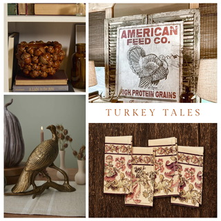 Turkey Tales brings a touch of seasonal storytelling into your home with thoughtful accents inspired by the Thanksgiving table. From classic prints to heirloom-style figures and rich autumn textiles, each piece adds warmth, character, and festive charm to your space as you prepare to gather and give thanks.