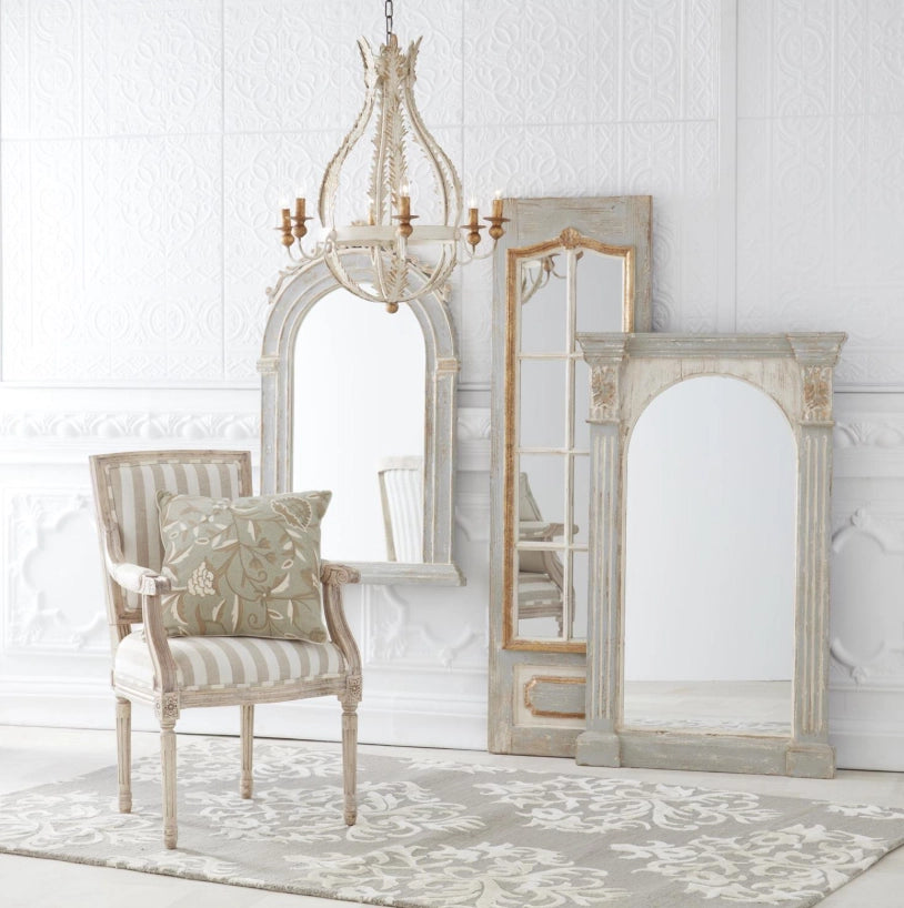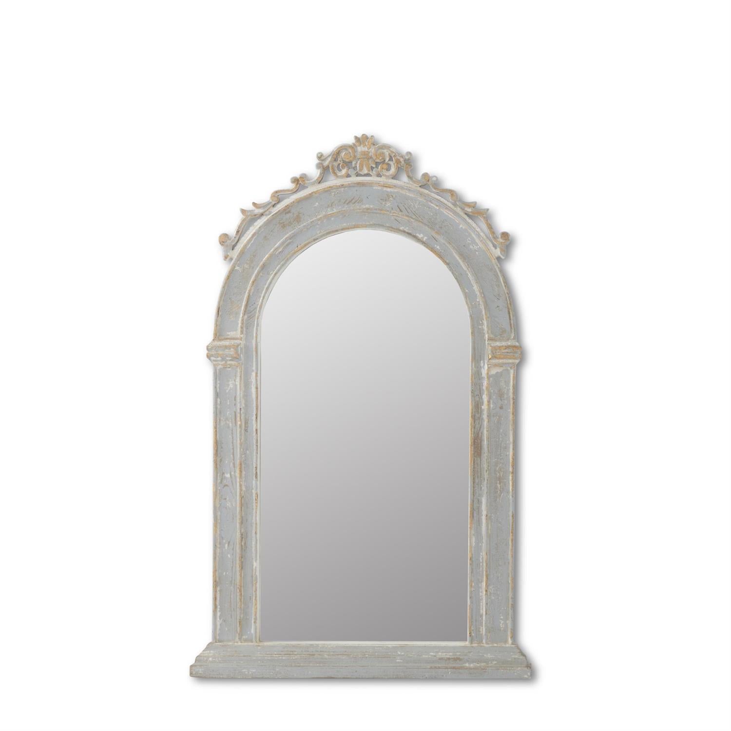 Make an unforgettable impression with this striking arched mirror. Its weathered blue and white finish, accented with gold ornamental details, creates a captivating focal point that transcends ordinary wall décor. At 45.5 inches, this statement piece commands presence while its intricate frame design adds architectural elegance to entryways, bedrooms, or living spaces seeking refined sophistication and visual drama.