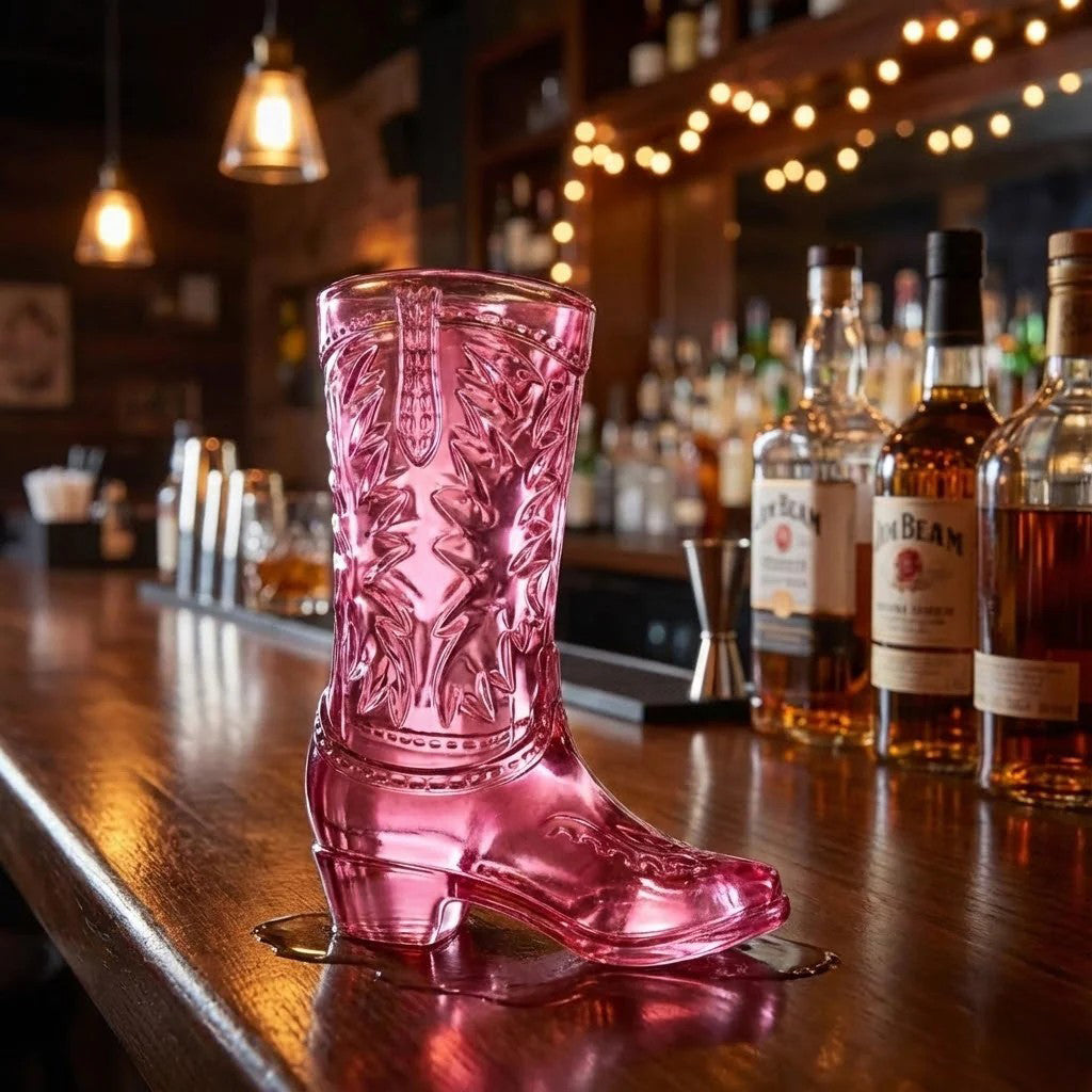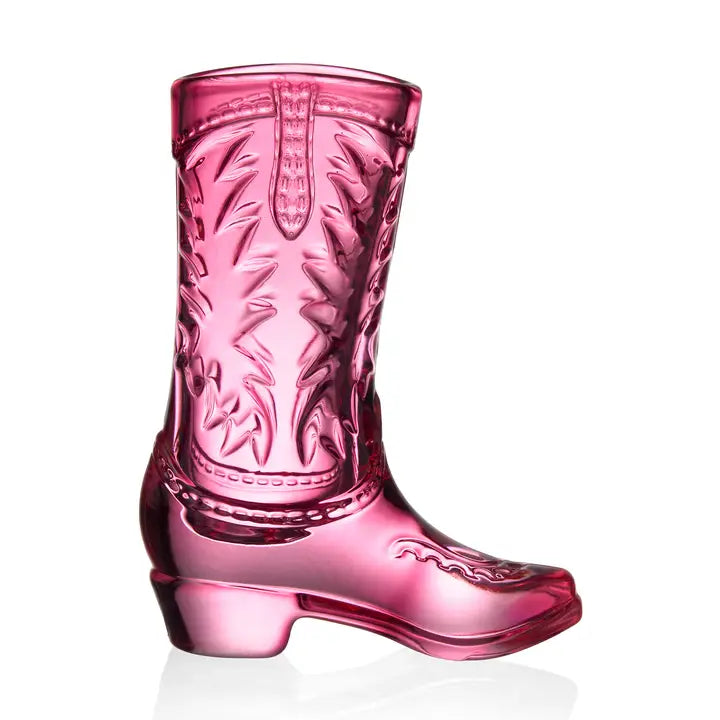 Kick up your heels and celebrate in style with this eye-catching pink crystal cowboy boot shot glass. Perfect for Galentine's Day toasts, bachelorette parties, or a fun girls' night out, this quirky drinkware brings Western charm with a feminine twist. The distinctive boot shape makes it a conversation starter at any gathering, while the vibrant pink hue adds a playful pop to your bar collection. Whether you're sipping cocktails with your crew or gifting it to a friend who loves all things fun and fabulous, this shot glass delivers personality in every pour.