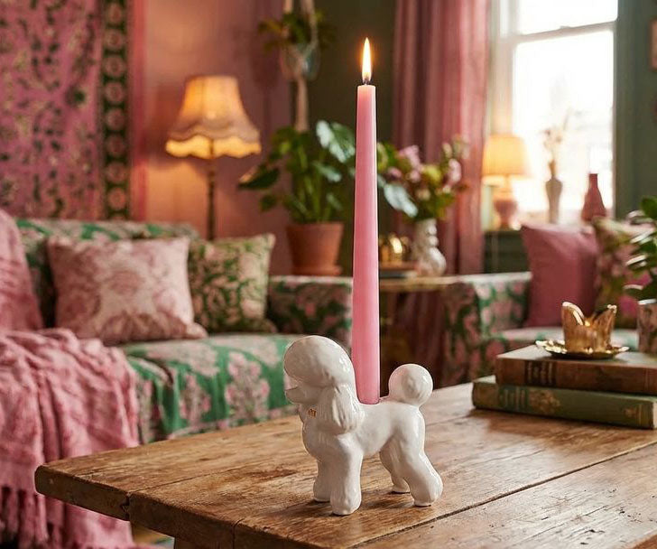 Celebrate your love for poodles with this charming White Poodle Taper Candle Holder. Hand-crafted from ceramic, this sculptural piece captures the elegance of the breed in a functional design that doubles as a striking decorative accent. Perfect for poodle enthusiasts and anyone seeking a unique, conversation-starting addition to their home. The graceful form complements modern and traditional interiors alike, making it an ideal gift or personal indulgence for those who adore these beloved dogs.