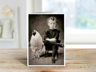 Smoking Boy with Chicken - Note Card