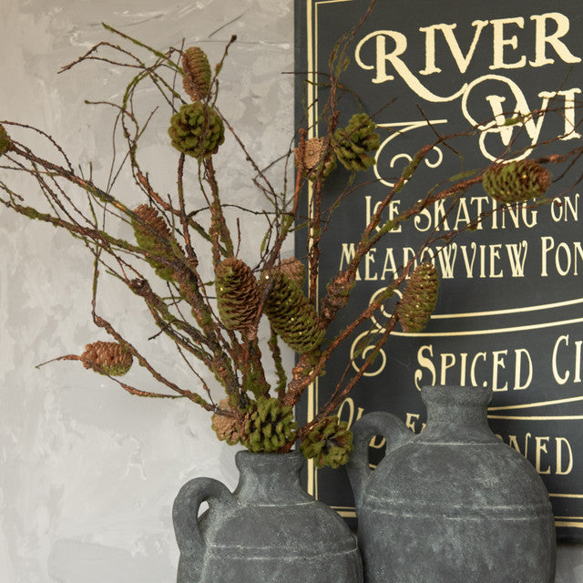 Elevate your holiday décor with this stunning 26" Mossy Pinecone and Twig Spray. Whether displayed solo as a striking seasonal accent or layered into a festive floral arrangement, this faux stem brings natural texture and woodland charm to any space. The realistic mossy details and pinecone elements capture the essence of winter botanicals without requiring maintenance. Perfect for creating a warm, inviting atmosphere throughout the holiday season.