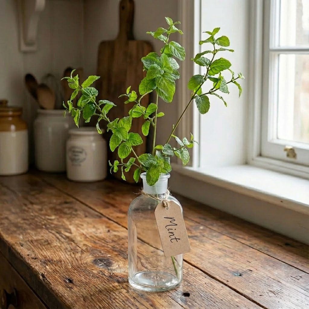 Bring natural elegance to your kitchen with this stunning 29" Garden Mint Stem. Its lifelike appearance makes it the perfect addition to centerpiece arrangements, adding a fresh, botanical touch without the maintenance. Whether you're styling a dining table, kitchen counter, or entryway, this versatile stem delivers authentic garden charm that lasts. Create an inviting atmosphere with effortless, year-round greenery that looks just as beautiful as the real thing.