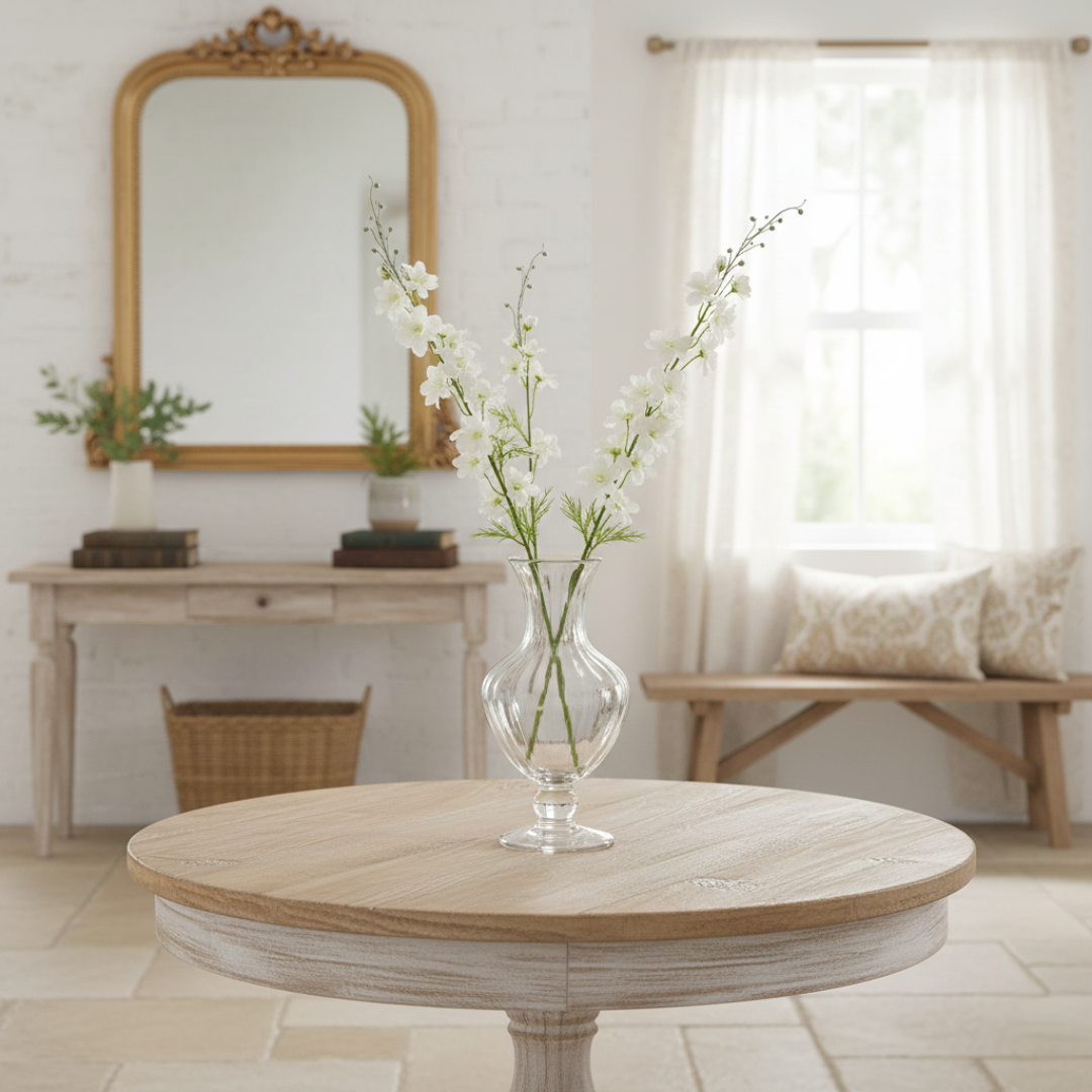 Add a touch of nature with our 34" White Larkspur Stem! This faux stem is perfect for bunching together or using alone in a vase. Create a stunning display with this versatile and realistic-looking piece.
