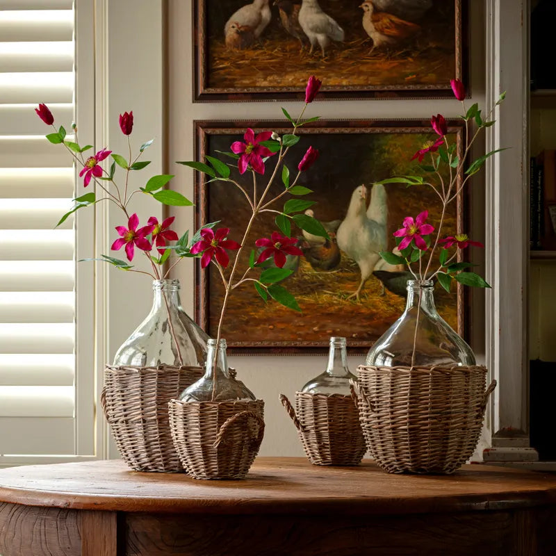 Bring the elegance of a blooming clematis vine into your space with this stunning 35" faux botanical. Featuring realistic elongated stems, lush full blooms, and delicate buds in rich magenta, it captures the natural beauty of the climbing vine without requiring care. Perfect for adding vertical interest to shelves, mantels, or floral arrangements, this lifelike piece brings timeless charm and sophisticated color to any room.