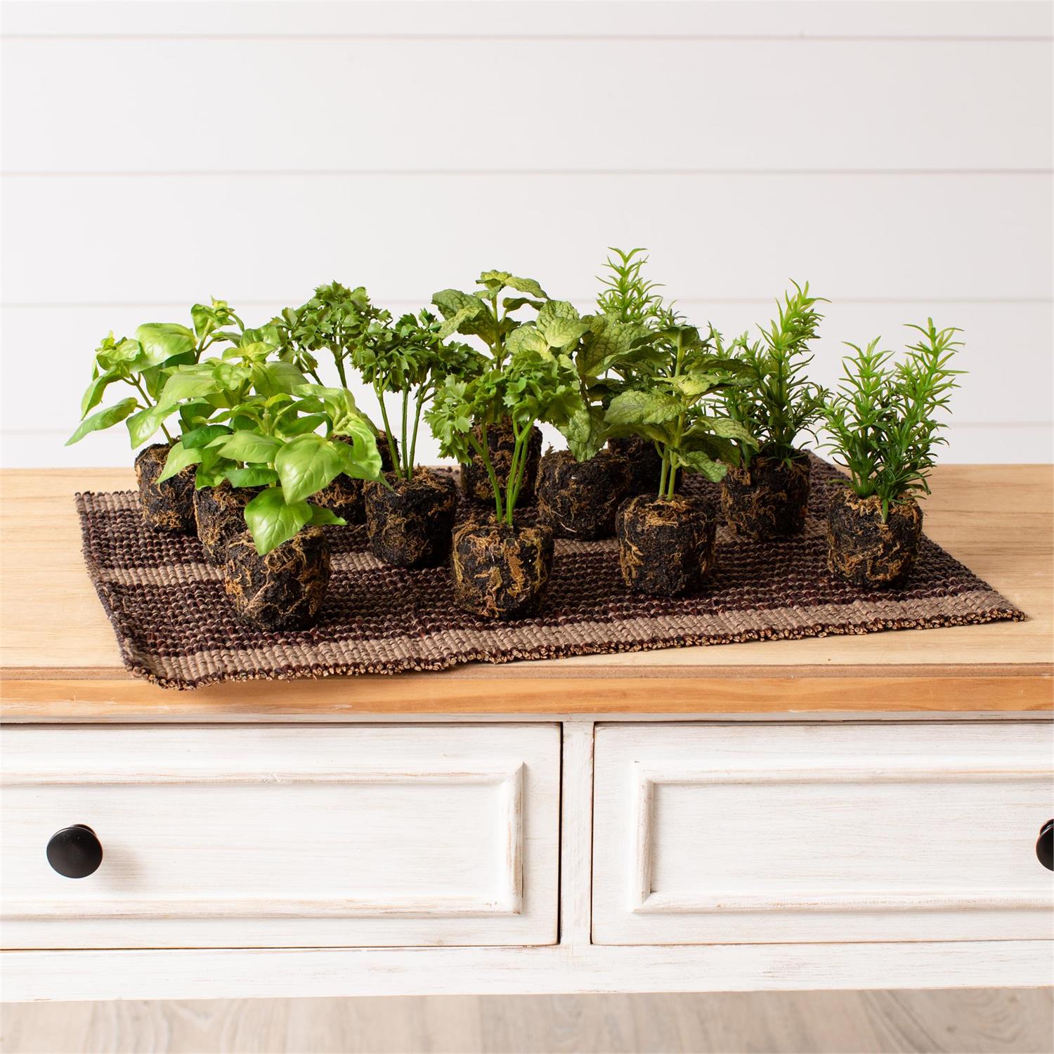 Elevate your kitchen with botanical elegance. These herb replicas arrive nestled in faux soil balls, delivering the aesthetic of a thriving herb garden without the maintenance demands. Each piece captures the delicate intricacy of living botanicals—select from Parsley's feathery fronds, Mint's verdant leaves, Basil's aromatic silhouette, or Rosemary's refined sprigs. Designed for discerning home curators, these lifelike specimens serve as sophisticated countertop décor that requires nothing but admiration. A refined accent for culinary-inspired interiors.