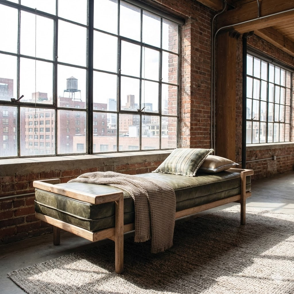 Elevate your bedroom with this striking Distressed Olive Color Leather Day Bed Bench. Featuring a beautiful wood finish and rich leather upholstery, it's the perfect statement piece to anchor the foot of your bed or create a cozy reading nook beneath a window. The distressed detailing adds character and warmth to any room, while the sturdy construction ensures lasting comfort and style. Transform your space into a sanctuary of sophistication.