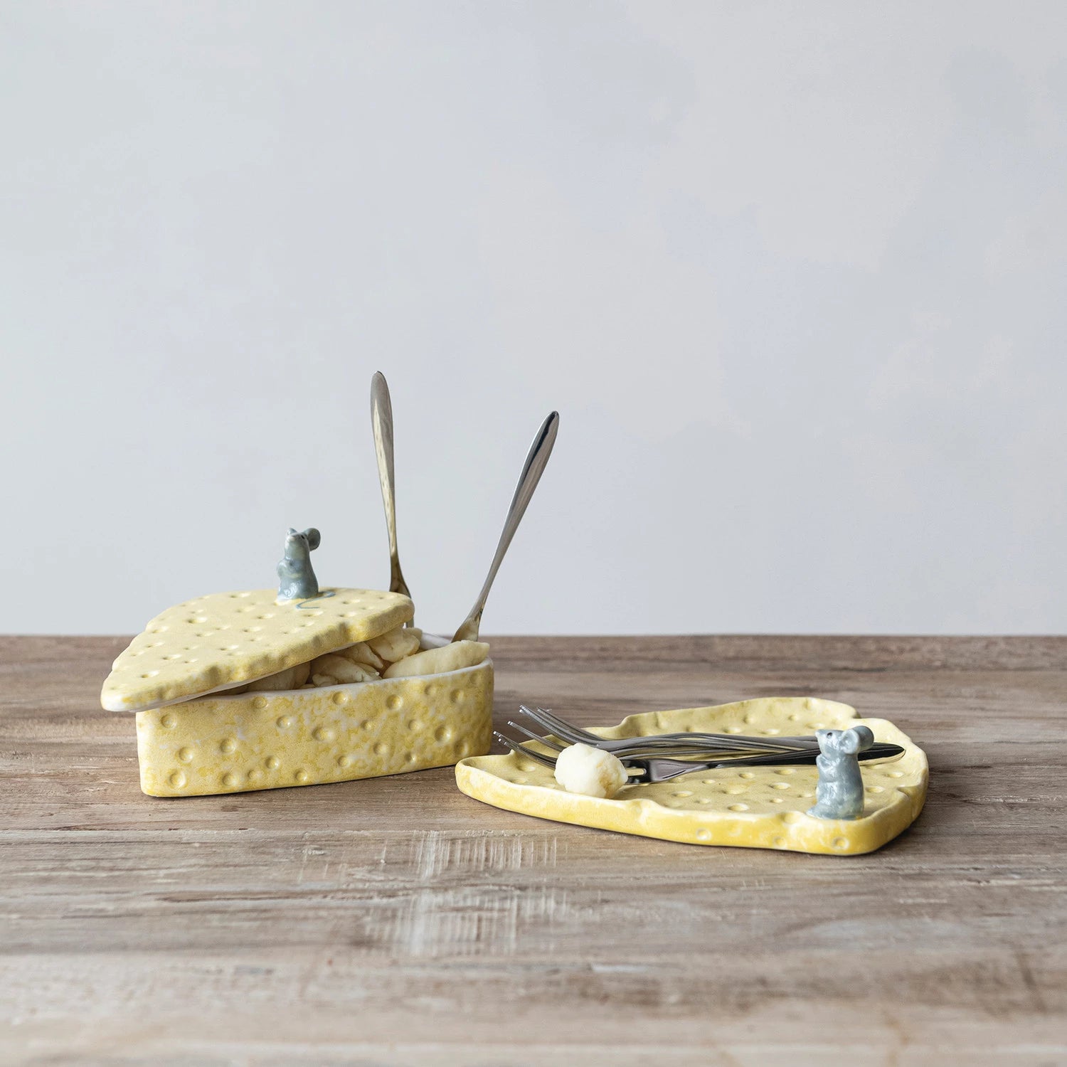 Stoneware Cheese Shaped Container w/ Mouse