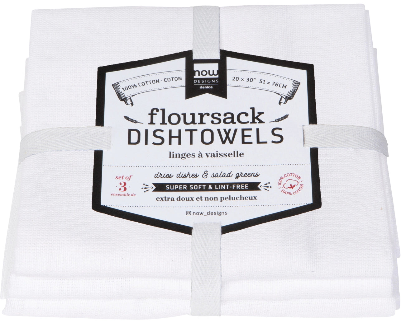 Flour Sack dishtowels are a must-have necessity for every kitchen. Fill your linen drawer with the perfect simplicity of these White Flour Sack Towels by Now Designs. Their crisp white colour5 meshes perfectly with any kitchen space. At 20x30 inches, these generously sized towels are larger than standard dishtowels.