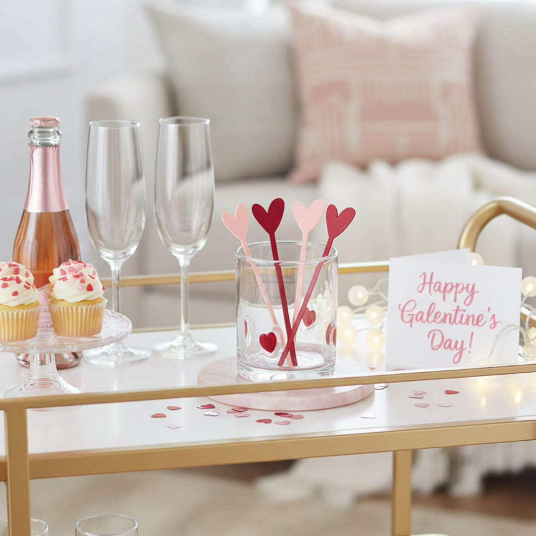 Elevate your Valentine's Day cocktails with our Heart-shaped Acrylic Drink Stir Sticks in red and pink